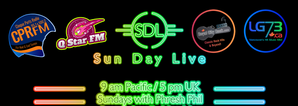 Sun Day Live is back on LG73 and Cinque Ports Radio! Phresh Phil and occasional guest co-hosts present great music along with unpredictable fun and frivolity. Live on LG73 9 am to 11 am Pacific and on Cinque Ports Radio 5 pm to 7 pm UK time. As of January 5th, 2025, Sun Day Live is also carried live on QStarFM.com, the flagship station of The Steve Jarrott Morning Show! As of February 23rd, 2025, Sun Day Live is also carried live on Royal City Rock.